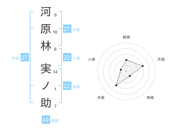 河原林 実ノ助さんを姓名の画数から五運を鑑定