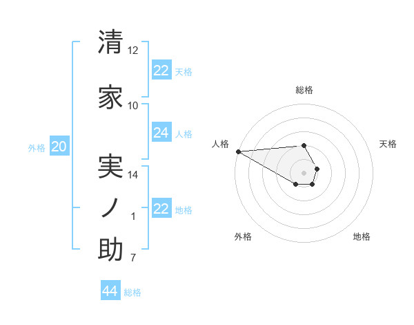 清家 実ノ助さんを姓名の画数から五運を鑑定