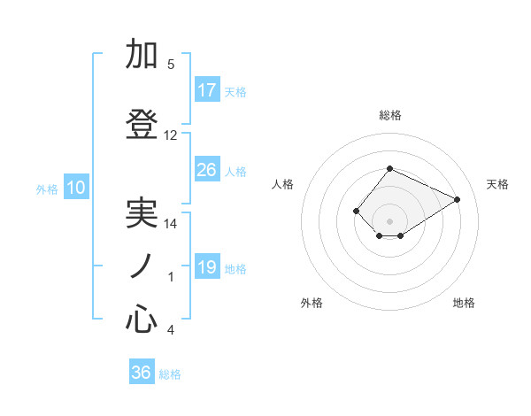 加登 実ノ心さんを姓名の画数から五運を鑑定