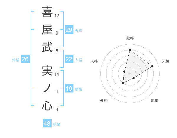 喜屋武 実ノ心さんを姓名の画数から五運を鑑定
