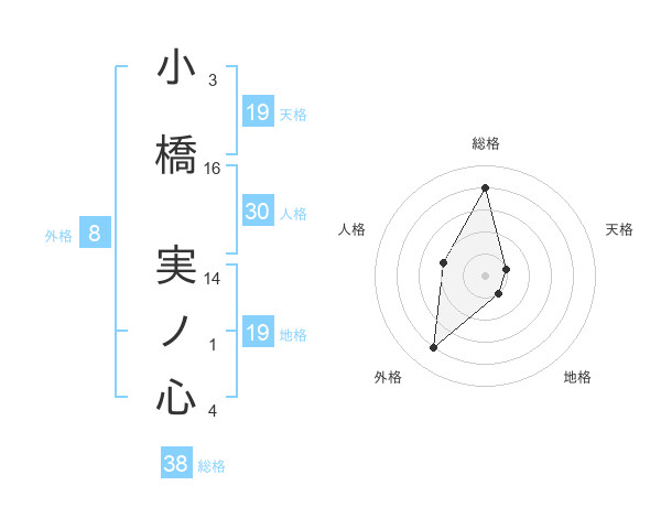小橋 実ノ心さんを姓名の画数から五運を鑑定