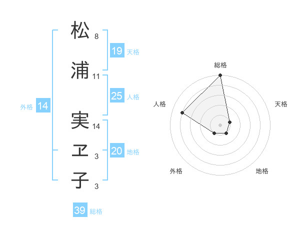 松浦 実ヱ子さんを姓名の画数から五運を鑑定