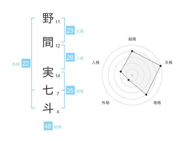 野間 実七斗さんを姓名の画数から五運を鑑定