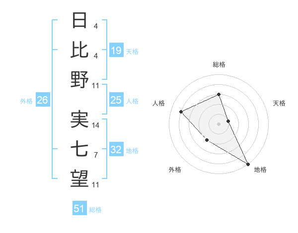 日比野 実七望さんを姓名の画数から五運を鑑定