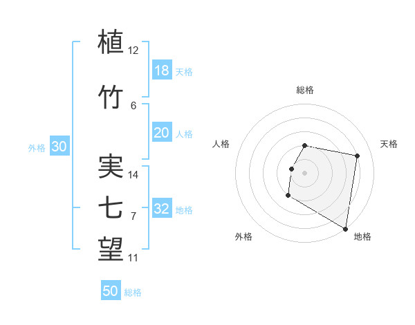 植竹 実七望さんの総格は50画の2点!