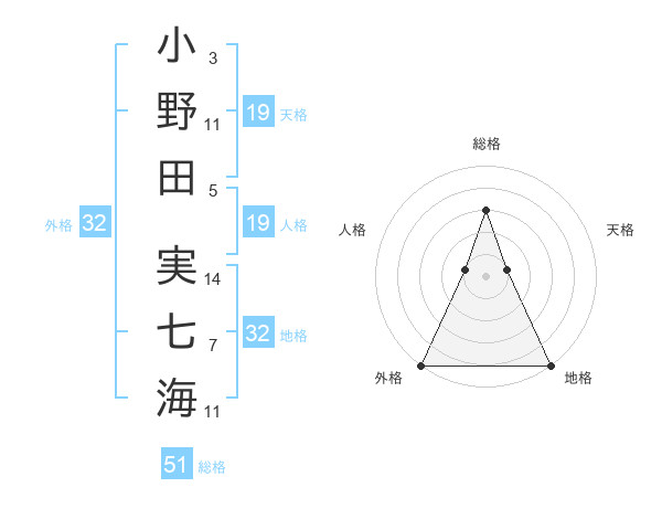 小野田 実七海さんを姓名の画数から五運を鑑定
