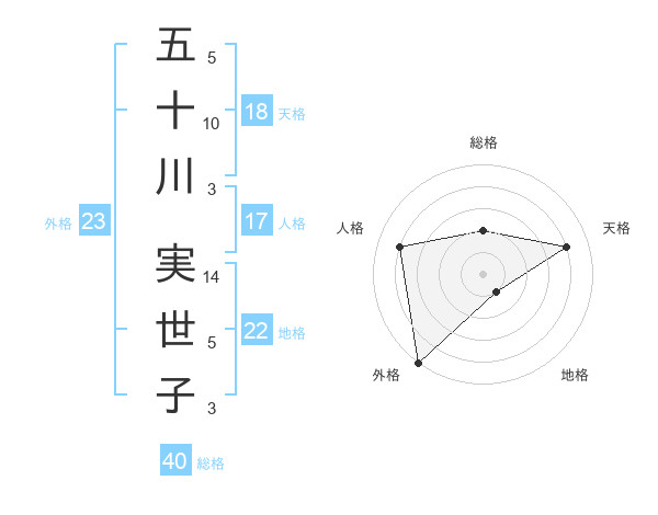 五十川 実世子さんの外格は23画の5点!