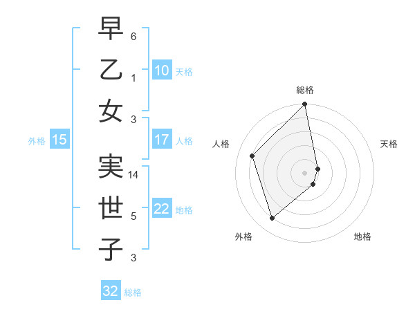 早乙女 実世子さんの総格は32画の5点!