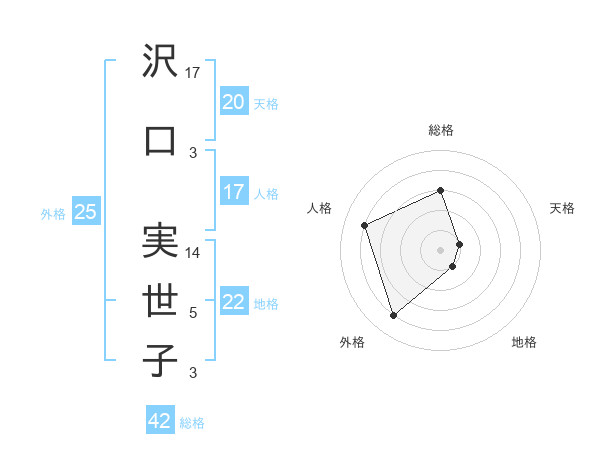 沢口 実世子さんを姓名の画数から五運を鑑定