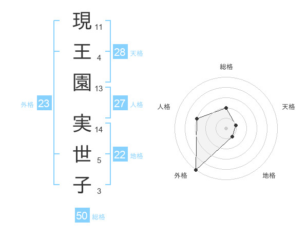 現王園 実世子さんを姓名の画数から五運を鑑定
