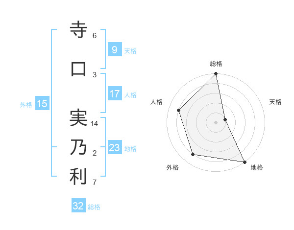 寺口 実乃利さんの総格は32画の5点!