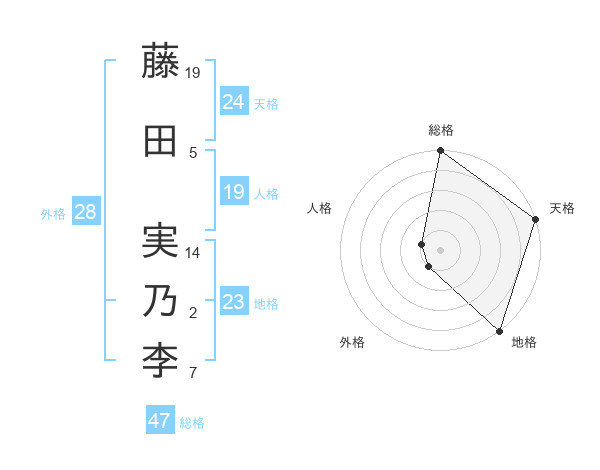 藤田 実乃李さんを姓名の画数から五運を鑑定