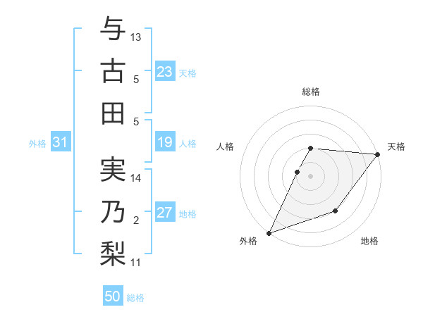 与古田 実乃梨さんを姓名の画数から五運を鑑定