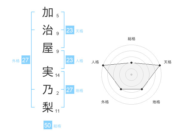 加治屋 実乃梨さんを姓名の画数から五運を鑑定