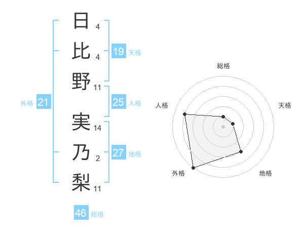 日比野 実乃梨さんを姓名の画数から五運を鑑定