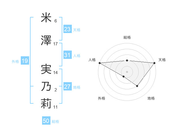 米澤 実乃莉さんの総格は50画の2点!