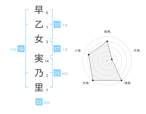早乙女 実乃里さんを姓名の画数から五運を鑑定