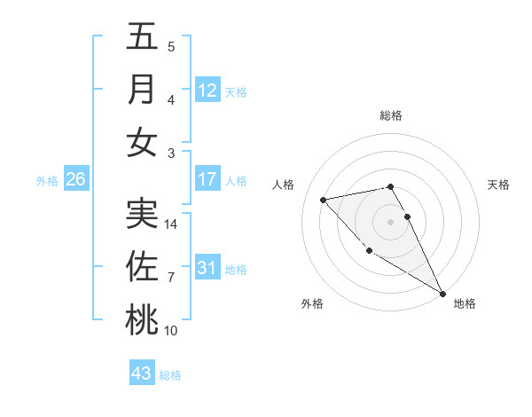 五月女 実佐桃さんを姓名の画数から五運を鑑定