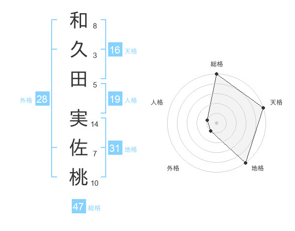 和久田 実佐桃さんを姓名の画数から五運を鑑定
