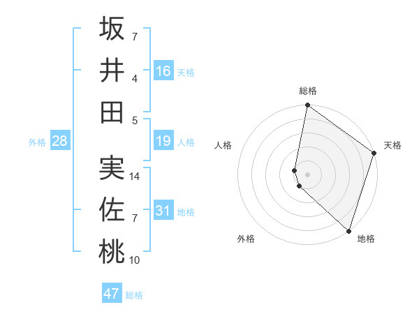 坂井田 実佐桃さんを姓名の画数から五運を鑑定