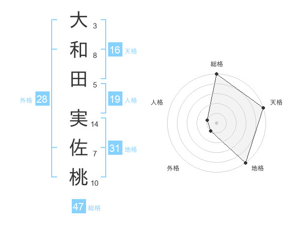 大和田 実佐桃さんの総格は47画の5点