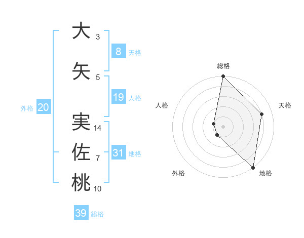 大矢 実佐桃さんを姓名の画数から五運を鑑定