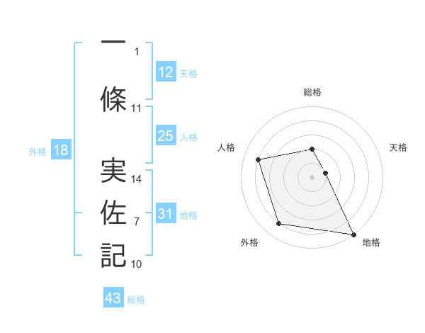 一條 実佐記さんを姓名の画数から五運を鑑定