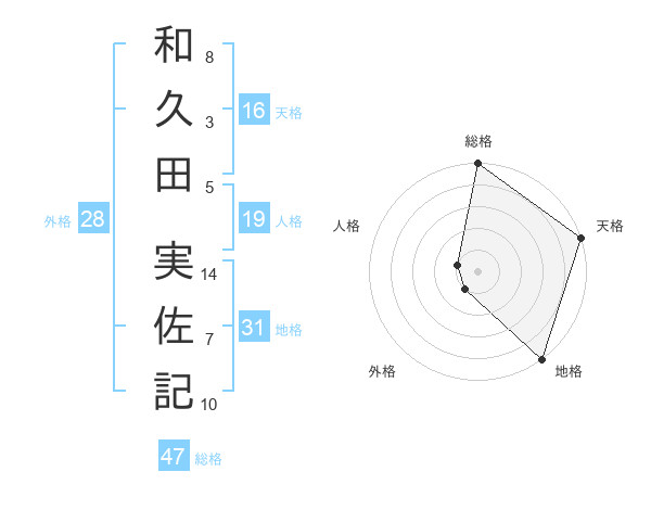 和久田 実佐記さんを姓名の画数から五運を鑑定