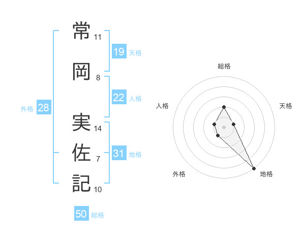 常岡 実佐記さんを姓名の画数から五運を鑑定