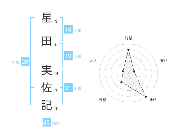 星田 実佐記さんの総格は45画の4点
