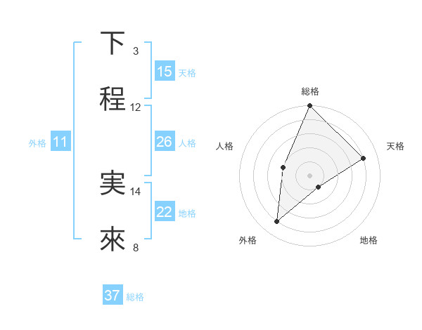 下程 実來さんの総格は37画の5点!