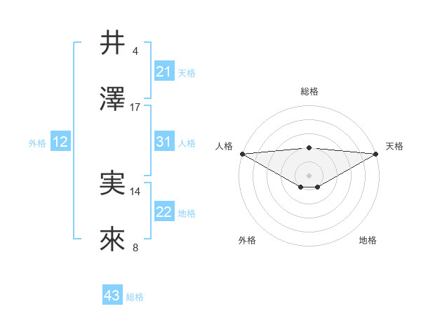 井澤 実來さんの天格は21画の5点!