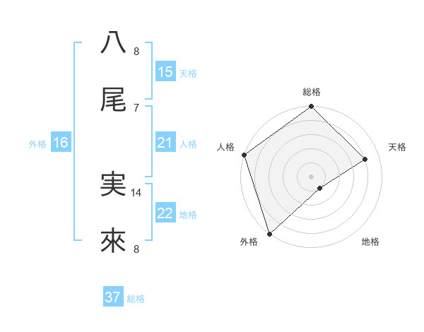 八尾 実來さんの総格は37画の5点!