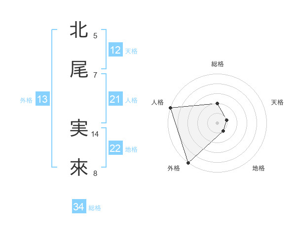 北尾 実來さんの外格は13画の5点!