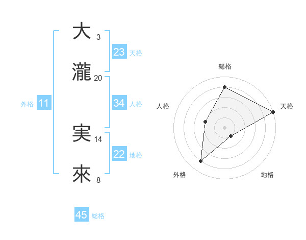 大瀧 実來さんを姓名の画数から五運を鑑定