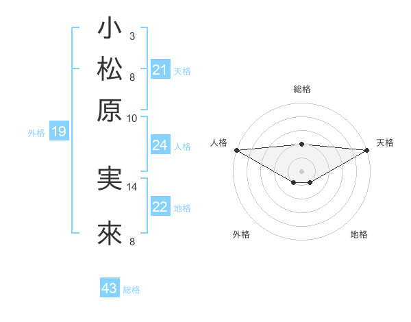 小松原 実來さんの天格は21画の5点!
