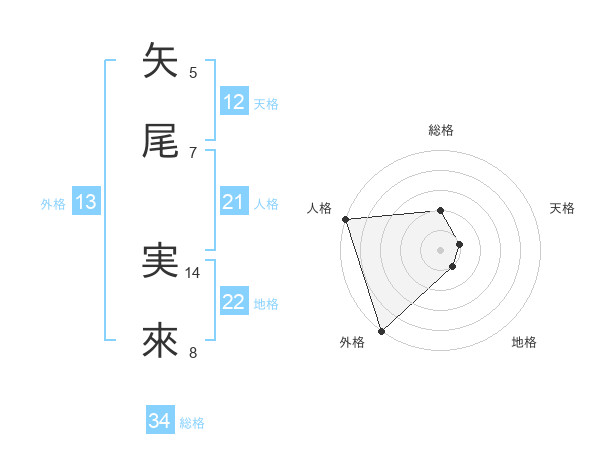 矢尾 実來さんを姓名の画数から五運を鑑定