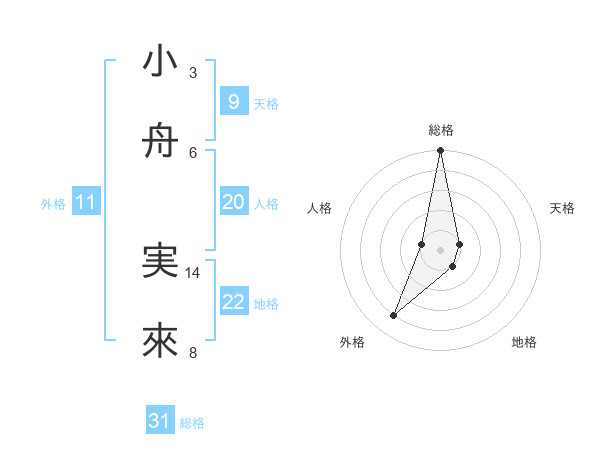 小舟 実來さんの総格は31画の5点!
