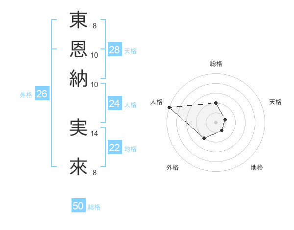 東恩納 実來さんを姓名の画数から五運を鑑定