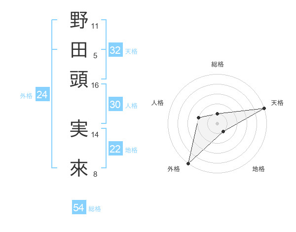 野田頭 実來さんを姓名の画数から五運を鑑定