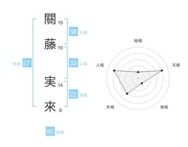 關藤 実來さんの天格は38画の4点!