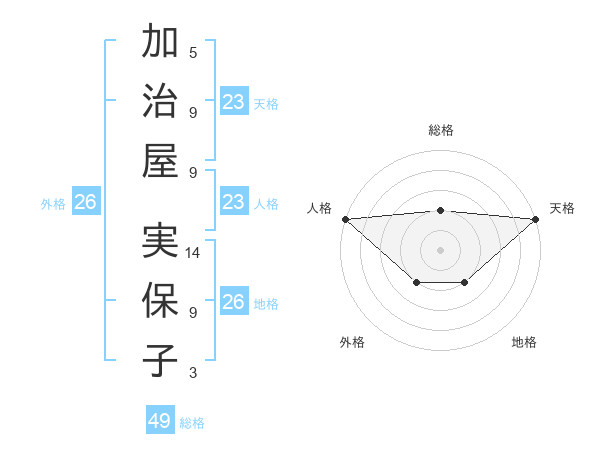 加治屋 実保子さんの天格は23画の5点!