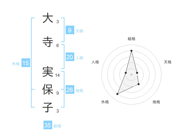大寺 実保子さんを姓名の画数から五運を鑑定