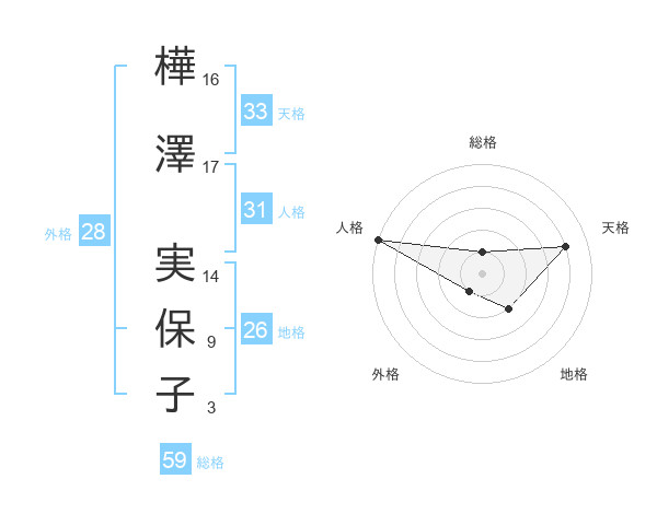 樺澤 実保子さんの天格は33画の4点!