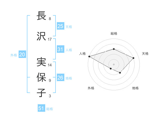 長沢 実保子さんの総格は51画の3点!
