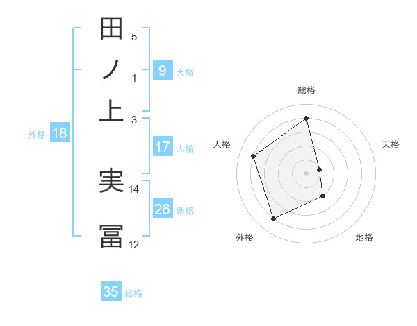 田ノ上 実冨さんを姓名の画数から五運を鑑定