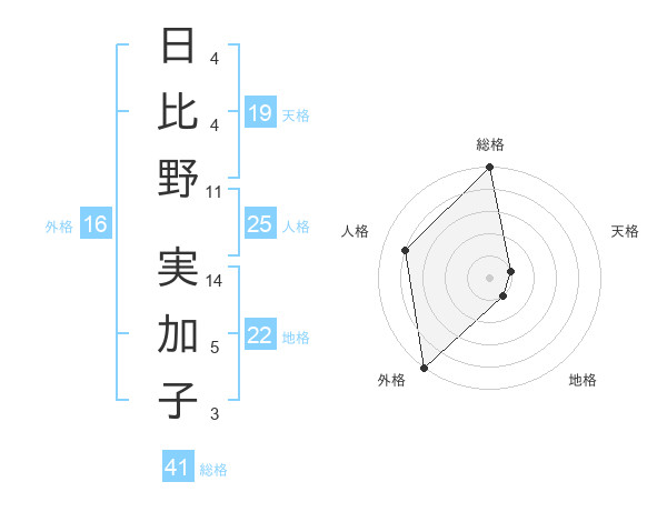 日比野 実加子さんを姓名の画数から五運を鑑定