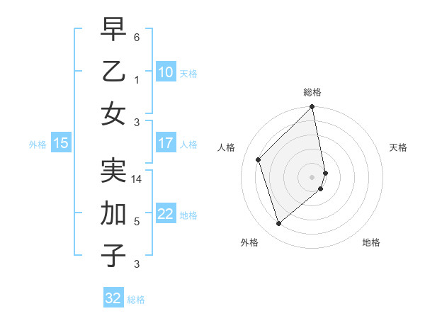 早乙女 実加子さんを姓名の画数から五運を鑑定
