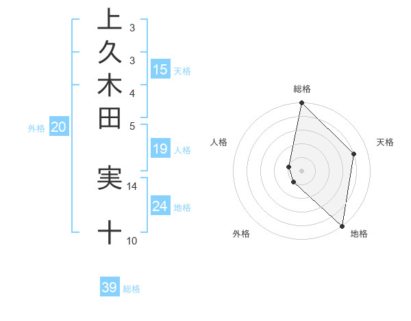 上久木田 実十さんを姓名の画数から五運を鑑定