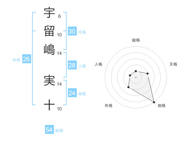 宇留嶋 実十さんを姓名の画数から五運を鑑定